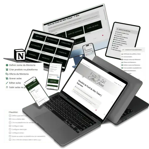 Todos os funis high ticket validados com o PASSO A PASSO completo e ferramentas para implementar em até 14 dias.